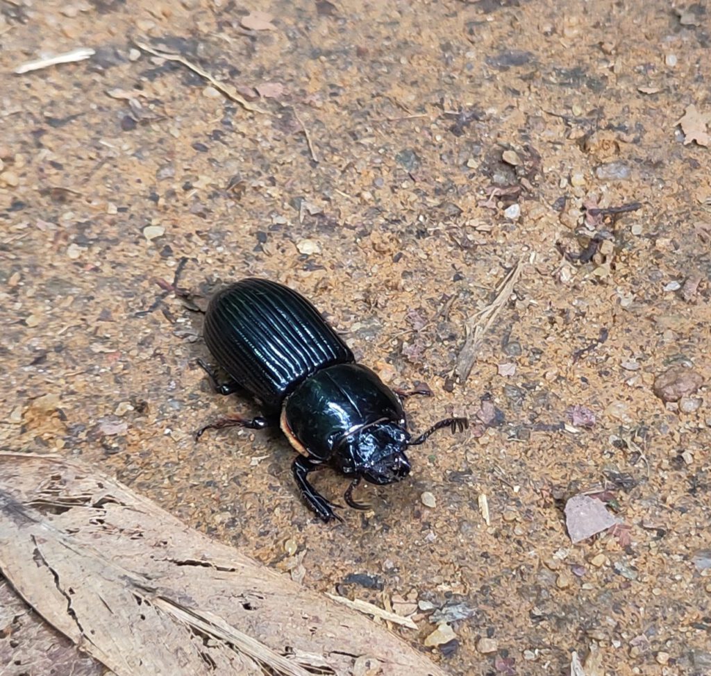 Patent-leather beetles (Odontotaenius disjunctus) are saproxylic (i. e. wood-eating) and – believe it or not – are capable of pulling 50 times their own weight.